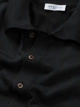 Black Merino Long Sleeve Polo