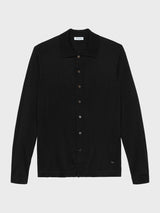 Our Black Merino Long Sleeve Polo (Zegna Baruffa Lane Borgosesia), this staple will keep you in good company throughout the year. Features a full button closure and ribbed endings. Easily combined with your favorite denim or worn just as well under a tailored jacket when an extra layer is needed.