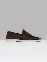 Mersino Originale 'Marina' loafers are so comfortable and chic, that you'll be wearing them all over the Marina and City. They've been handcrafted in Europe from brown suede and feature topstitched detailing and cushioned rubber soles. Wear yours with everything from jeans to shorts.